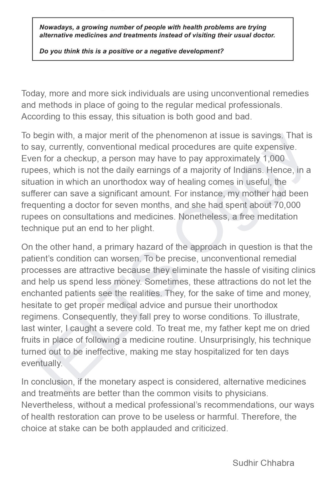 Writing Task 2 Development Essay Alternative Medicines Date: October 21, 2022Author: Sudhir Chhabra 0 Comments Share this: Share on X (Opens in new window) X Share on Facebook (Opens in new window) Facebook Like Loading... Related